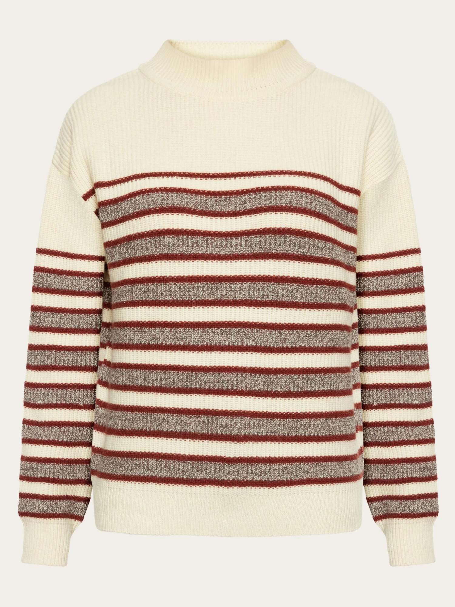 Layer up in cozy pieces designed for comfort this season. Using only the softest lambswool, our knitted crewneck will keep you warm and ready to embrace whatever comes your way. The crewneck is designed in a regular fit with an eye-catching striped color block pattern.