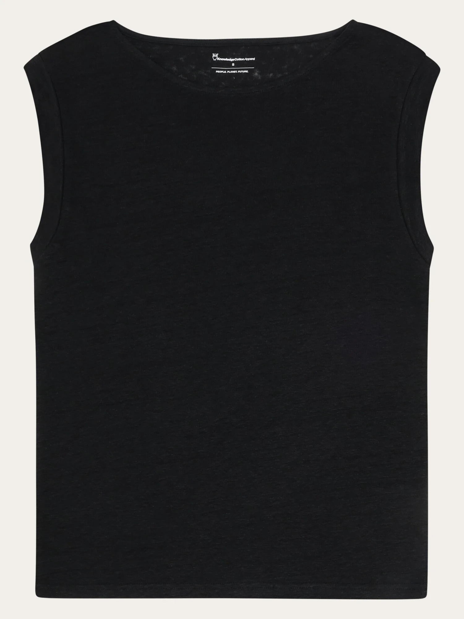Choose a soft, responsibly made T-shirt for everyday purposes. The linen T-shirt has a loose fit without sleeves and a wide, rounded neckline. Made from 100% organic linen, the quality feels incredibly soft, has a natural melange dye, and is the perfect addition to a comfortable and conscious wardrobe.