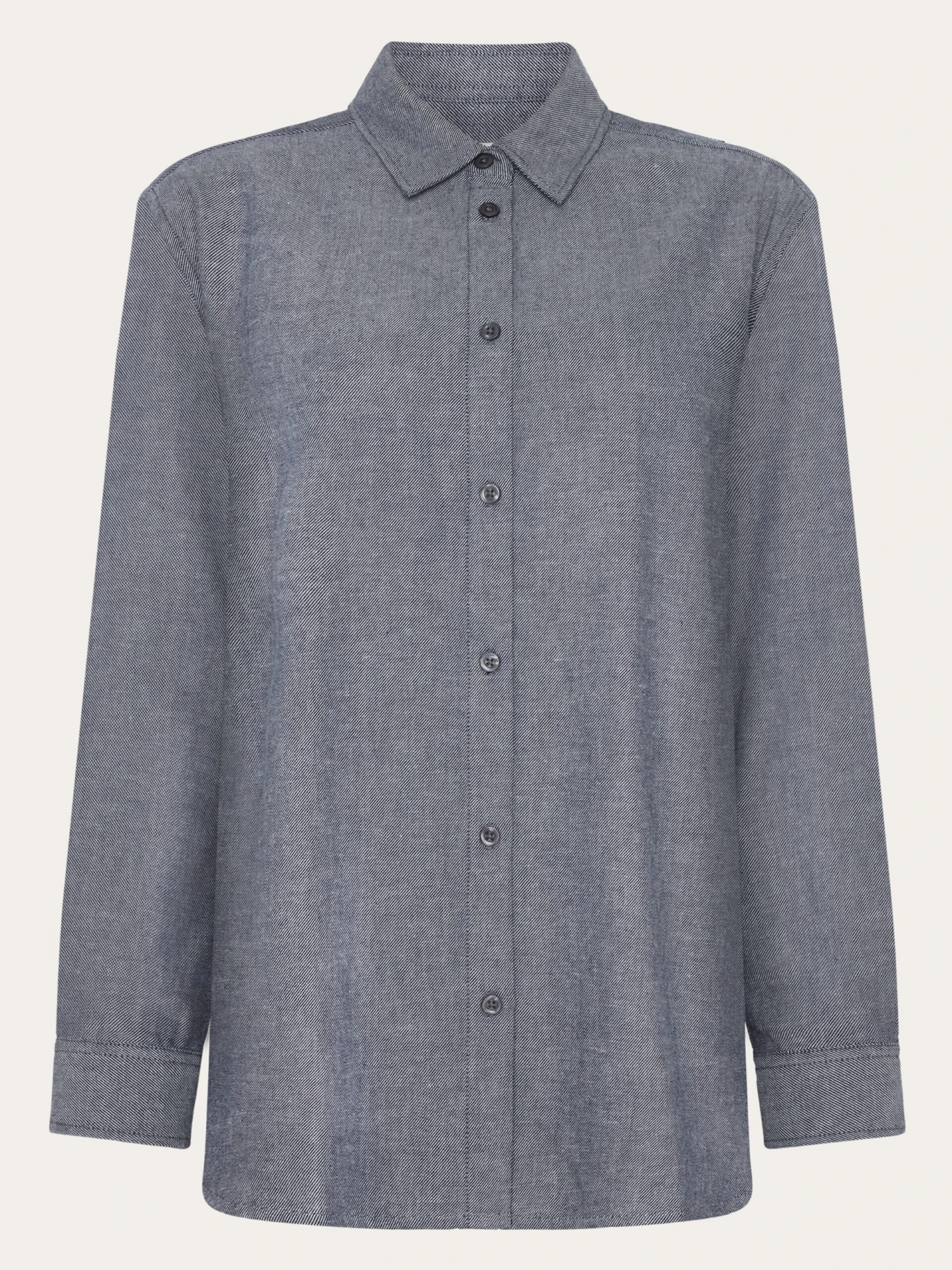 This shirt features a straight fit that offers a clean, tailored silhouette while maintaining comfort and ease of movement. Crafted from a soft, textured fabric, it combines a classic button-down design with refined details like a sharp collar and single-button cuffs. Perfect for both work and casual settings, it’s a versatile wardrobe staple that pairs effortlessly with trousers or denim. The lightweight material and understated elegance make it a year-round essential.