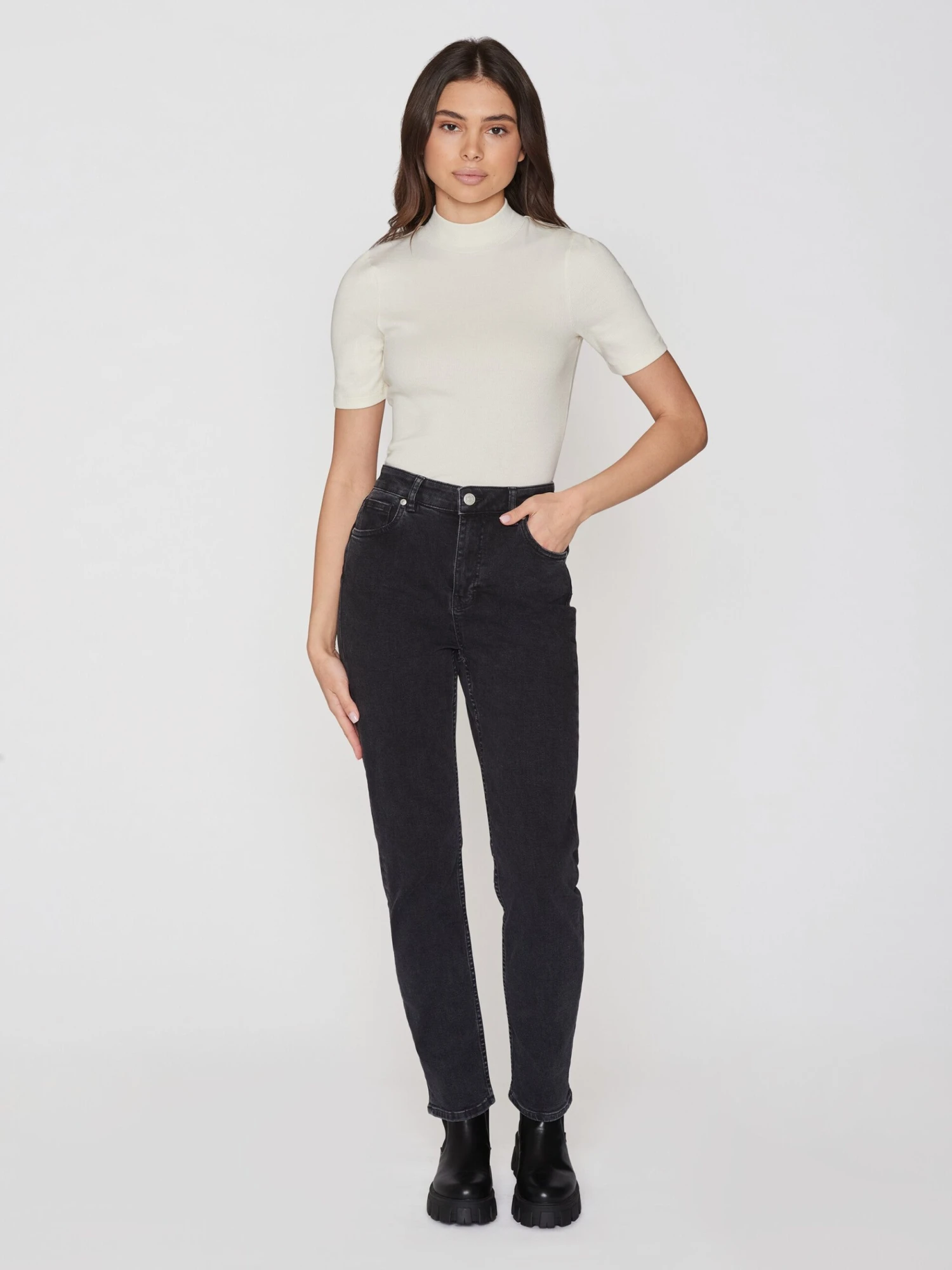 Let your everyday wardrobe consist of classy casuals designed to last through seasons. Our short-sleeved rib T-shirt is made of soft organic cotton with a touch of stretch for easy movement and a tapered look. The T-shirt is designed in a regular fit with wide ribbing for a textured finish and a high neck.