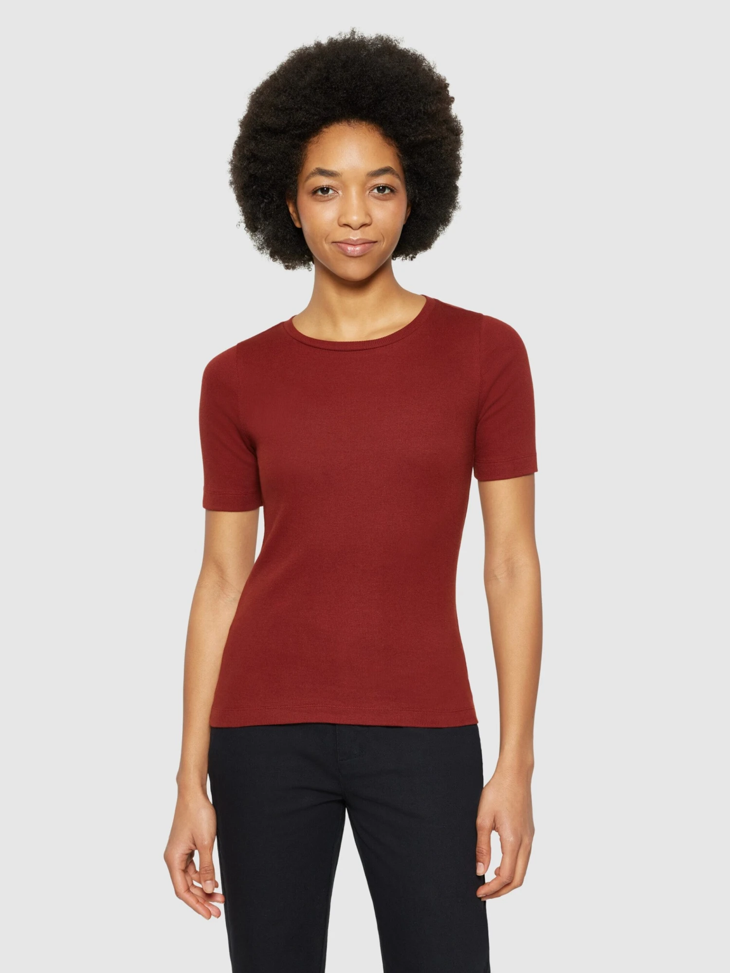 Let simple and timeless styles rule your summer wardrobe. Our rib T-shirt is the perfect choice for your summer outfit. It is made in a soft blend of lightweight organic cotton and a little bit of elastane for your comfort. Designed in a slim fit with mid-length sleeves and a rounded neckline.